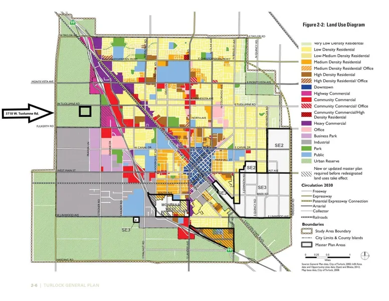 West Turlock. From this Property, You can SEE Amazon, Costco, Highway 99, and the Growth of Turlock. Furthermore, it is Located in the City of Turlock's Urban Reserve Mapping. Currently being Farmed in Almonds. House, Garage, and Outbuildings. TID Power, TID Irrigation District, and Ag well of 25hp. Ag is pumping approx. 400gpm, 2 sets into orchard, and TID Flood water available. Approx. 24 Acres of Almonds, Nonpareil and Aldrich, Planted in 2011, 20x15 Spacing. Approx. 13 acres of Butte and Padre, 22x12 Spacing, Planted in 2001. Perfect Location for a Ag Business, Planned Development, and/or Investment. A Must See!!