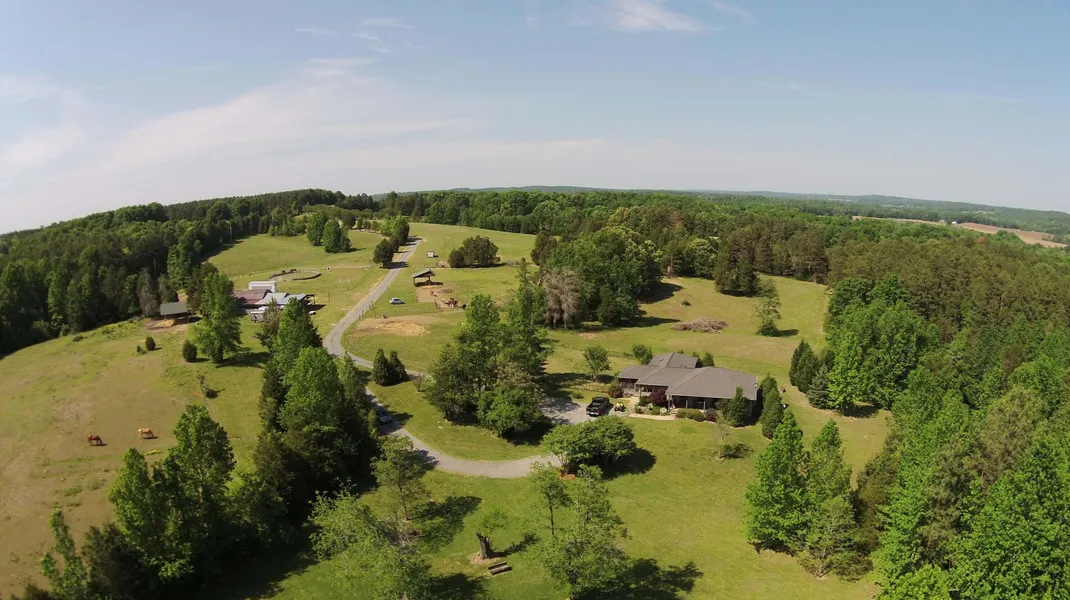 A gated entrance and tree lined drive make for an impressive drive past the horses grazing in the fields or taking shelter under one of three run-in sheds. Electric taped pastures are plentiful with more pasture is available for fencing if needed. Work with the young horses or get the bucks out of the frisky horse before your trail ride in the large paneled round pen.