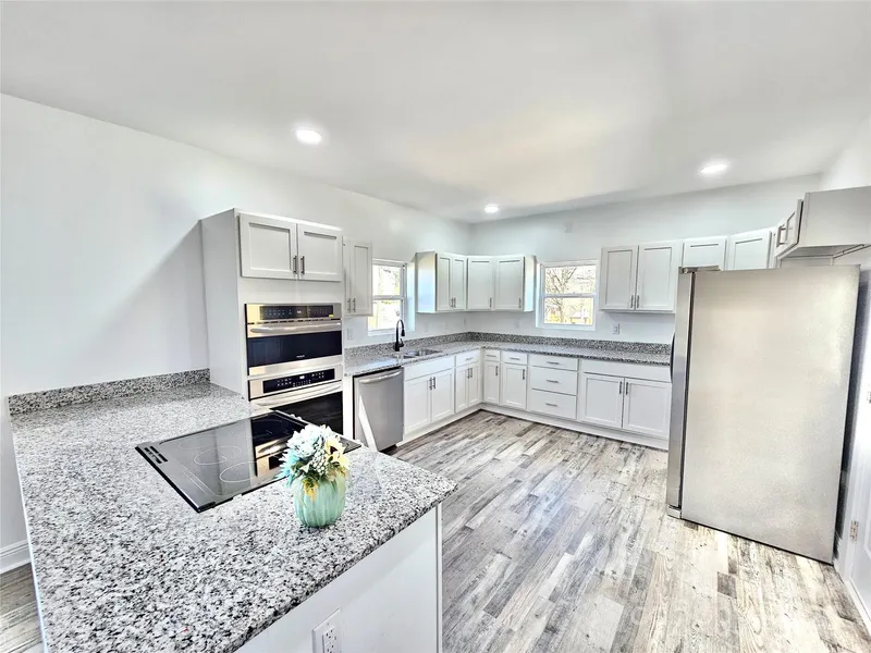 Welcome to your forever home! This beautifully remodeled 3-bedroom gem features a modern kitchen and bathrooms and is in a great location - Perfect for growing families. Just like new and move in ready with no HOA! New roof, new windows, new flooring, new doors, new light features, updated bathrooms and updated kitchen cabinets with new granite countertop. It includes all new stainless steel appliances: Refrigerator, stove, Dishwasher, built in microwave and additional oven! New electrical and plumbing throughout the home. The house was freshly painted inside and out. Includes a spacious driveway with carport. Home is conveniently located on a main road and in a corner lot with easy access to shopping centers, highway entrance and downtown.