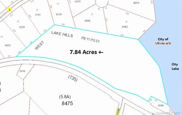Joins City of Albemarle property across from City Lake Park. Water and sewer go by this property on Hwy 73. Buyer will have to talk to City of Albemarle regarding tap fees and possibly connecting to water and sewer. This tract is only a portion of the above Deed reference. Tax card includes this tract and an additional 9.73 acres also available for sale see MLS # 3317368.