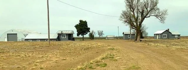 Located 4 miles north of Johnson, KS, this property has 1 mile of Hwy 27 frontage, the well is 4 years old, & all mineral rights will pass with the sale. The Grassland acres of 216 & Dryland Farm Ground acres of 97, are leased and produce rent payments. The Main House has 2 bed, 2 bath, new kitchen with all stainless appliance which will remain & a large utility/laundry area as you enter the home. The master bedroom has a large walk-in closet & private bath. Several outbuildings are on this property, including a well house, a bunk house, a field house. The 100x50 Roundtop has a concrete floor, new automated 14 x 16' door. Roundtop also has several newer pens, each equipped with heat & ac units and remote controlled ceiling fans and outdoor access.