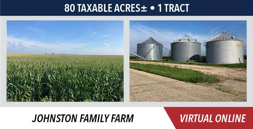 The property contains a total of 80 taxable acres, will be sold in 1 tract, is improved with 3 grain bins, and offers highly productive Class A soil.