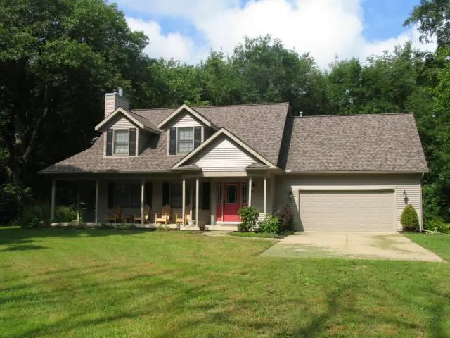 Must see this 2400 sq ft home built in 2009 with a wraparound porch situated on 15.49 acres! Open floor plan with beautiful cherry hardwood floors. Kitchen features custom cabinets with granite counter tops and all stainless steel appliances. Wood burning slate fireplace in both living room and master bedroom. Master bath furnished with cherry cabinets with quartz counter tops, fossil in stone tile, and a jet tub. Upstairs bathroom has custom cabinets with quartz counter tops and jet tub. There are 2 high efficiency furnaces and 2 central air units. All ages and measurements approximate.