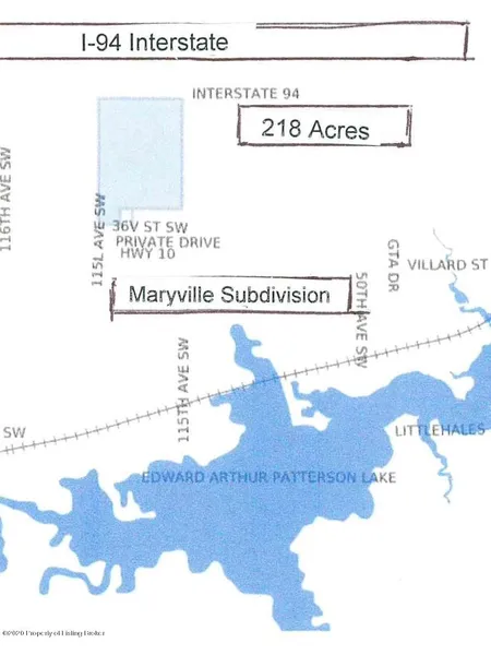 Super Investment opportunity. Great location right west and south of City of Dickinson. EXCELLENT LAND LOCATED OFF I-94.218 ACRES - SOUTH BORDER IS MARYVILLE SUB-DIVISION Rural Housing. Check out attached document for area land borders and overview from city and Patterson Lake.