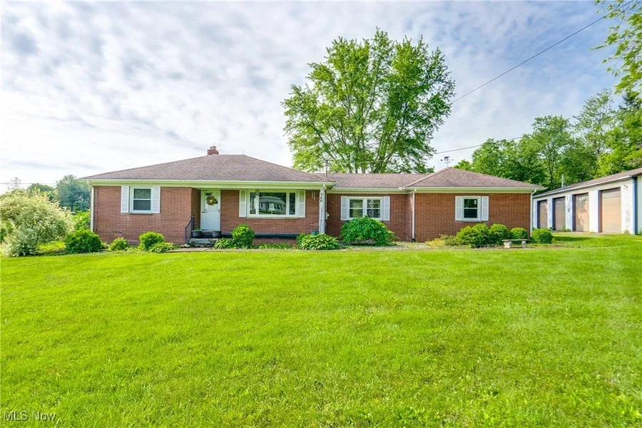 We're so excited to bring you this great home! Nestled in a peaceful, scenic setting, this longtime family home and farm offers 8.83 acres of opportunity. Perfect for a mini-farm or anyone needing ample outbuilding space, this well-maintained brick ranch comes with two bedrooms and 1.5 baths. From the front porch, enter the spacious living room with a picture window allowing natural light to shine through. The eat-kitchen has Shrock cabinets, overhead lighting, quartz countertops, and a eat-in area. The family room/breezeway is off the kitchen with access to the back patio, garage, and basement. The 1/2 bath features a single vanity with cabinet space below. There are two bedrooms, both with beautiful hardwood flooring. The full bath has a tile tub and shower, plus a single vanity. Downstairs in the basement, you'll find a large 22 x 25 rec room with a gas fireplace to keep you cozy. Plus you cannot forget about the canning kitchen with a range. For those who need space, this property delivers. A massive 64x26 pole barn with four bays (including two with openers), a 30x40 two-level workshop, a 36x46 RV storage building, and a 64x36 flat barn with an attached 12x64 wood shed provide endless possibilities. Power runs to all outbuildings, making them ideal for farming, hobbies, or storage. The outside also offers a patio for relaxing. Plus, the home has quick access to highways, shopping, and schools! Don't miss your chance to see this wonderful home; schedule your showing today!