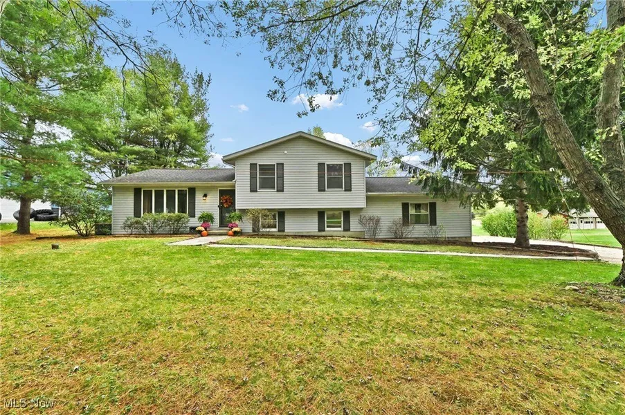 Built, lived in and loved by the same family for over 35 years, this wonderful split level home is just waiting for it's new owners! Nestled among soft pine trees on over half an acre, this home has something for everyone with 4 bedrooms, two full baths and multiple areas for people to gather, hang out and share life. Three of the bedrooms are on the upper level, with the primary bedroom having private access to a full, shared bath. The main floor has a huge living room and dining room with hardwood floors, access through sliders to the back deck, and a fully applianced, cozy kitchen with granite counters and backsplash, a deep SS double sink, PLUS an extra prep sink and custom cabinetry throughout. Step down into the large family room, complete with a TV and bookshelf (which stay) AND just off that room is bedroom #4 with another full, shared bath. The final level is the basement, which has been waterproofed and has LOADS of storage space, plus a laundry area, including a sink, a washer, dryer and chest freezer that also stay with the house. From the family room, you can access the 2.5 car HEATED garage - a car or woodworker's dream space! A pellet stove heats the entire room which has cool storage lockers on one side and a wood-working/workshop area on the other. Outside, there is a large Amish-built shed for even more storage, a raised bed with strawberry plants for next summer and the septic tank which has already been inspected and PASSED by the county. With plenty of room to run around, a lovely, quiet neighborhood and Top-rated Lake Local schools, PLUS a one year Home Warranty, what's not to love? Roof and Furnace: 2014; A/C: 2025. Enbridge gas: $91/month; First Energy:$107/month; Rumpke Trash: $136/quarterly. Call your favorite Realtor and schedule your showing today!