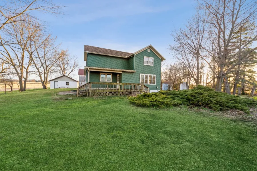 FABULOUS OPPORTUNITY! Beautiful 4.1 acres with over 480 feet of frontage and a view of Bass Lake surrounds this 1826 Sq. Ft. 2-story farmhouse showcasing 4 bedrooms, 2 1/2 bathrooms, country kitchen, wood burning stove, basement, 3 car garage, PLUS 36x60 old barn, 32x60 concrete building for all of your lake toys and 2 metal grain bins! This unique property is a real treasure with such close proximity to the lake. Easy access to Highway 35 and Highway 10.
