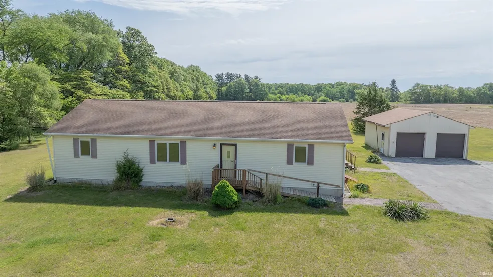 Discover this charming ranch-style home in North Judson, IN, offering 1,568 sq ft of comfortable living space with 3 bedrooms and 2 full bathrooms. Built in 2007, this residence features a spacious wood deck perfect for outdoor entertaining and relaxation. Situated on a generous 10.73-acre lot, it provides ample privacy and room for outdoor activities. The property also includes a large pole barn, ideal for storage, hobbies, or small farm endeavors. With its thoughtful design and expansive land, this home is an ideal retreat for those seeking tranquility and functionality.