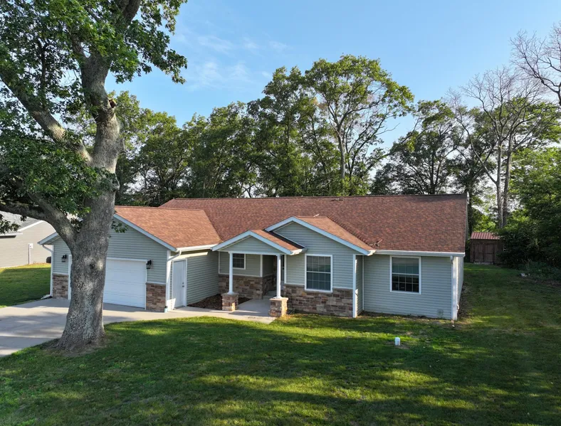 Welcome to your dream country home--a charming one-story residence featuring 3 bedrooms and 2 bathrooms, built in 2019 on a generous .75-acre lot. This home is move-in ready, inviting you to create lasting memories. Upon entering through the front door, you'll be greeted by an open-concept living area that includes a spacious living room, dining room, and a kitchen adorned with granite countertops, stainless steel appliances, and elegant white cabinets. Additional living spaces feature a cozy den with floor-to-ceiling bookshelves, perfect for enjoying nature or curling up with a book, a sunroom with a cabin vibe, and a deck that overlooks the serene backyard. The home boasts a thoughtful layout with a split bedroom floor plan, including a primary bedroom suite with his and her closets and a bathroom complete with a granite countertop. Ample storage is available with a finished two-car ga...