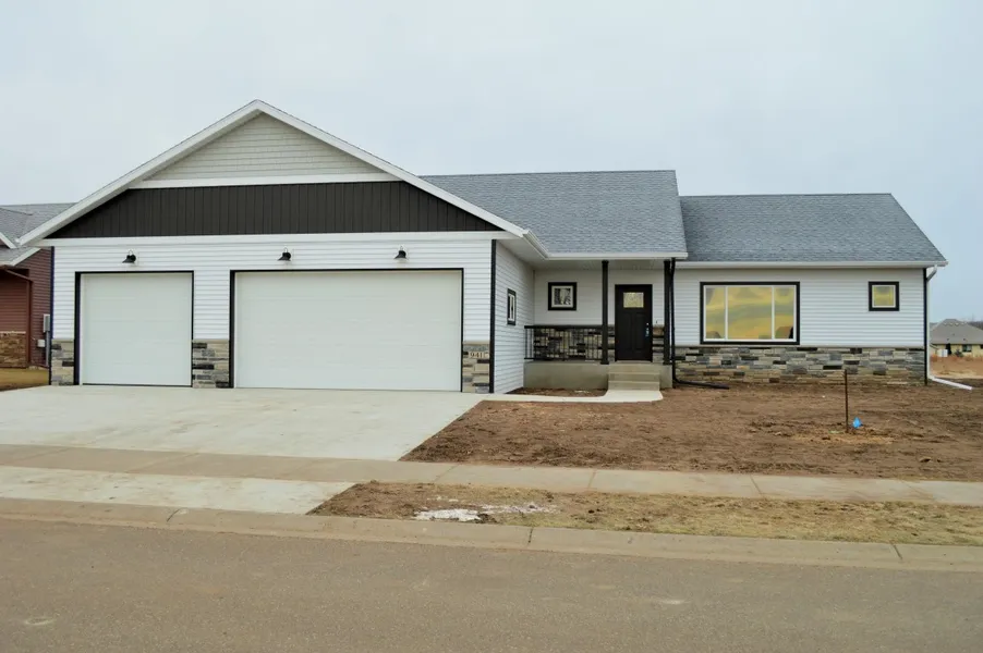 Brand new rambler: 4 bedroom, 2 bath, steel siding, vertical accents, stone, porch & concrete drive. Open floor plan, vinyl plank flooring, 9 ft high ceilings, master w/private suite. Huge kitchen w/custom knotty alder cabinets, center island, SS appl, & walk-in pantry. MF laundry includes washer/dryer & laundry tub. 12x14 patio, oversized 3 stall garage w/ 8 ft high garage doors & floor drain, located on a quiet street & close to the park!