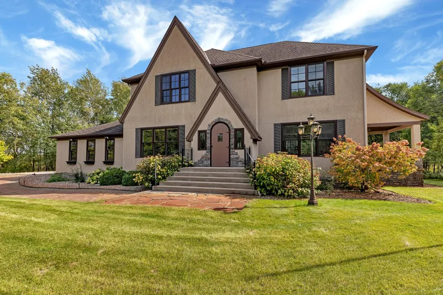 Beautiful 2 story in exclusive development on acreage. 9' ceilings, granite counters, tile & wood floors, wonderful natural lights, covered porch, beautiful spacious mater bedroom, great room with fireplace, granite island, lower level family room with fireplace, and nice upgraded millwork. 1920s replica of Tudor. Close to I-94.