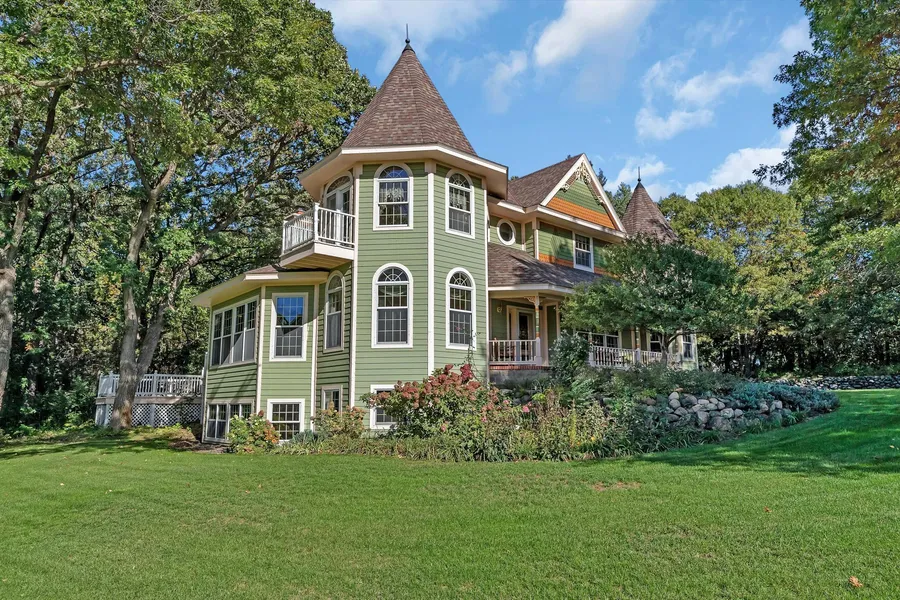Custom built Neo Victorian/Queen Anne home situated on a beautifully landscaped 2.26-acre lot with woods and so much privacy. The custom woodwork throughout the home is beautiful with so many unique features. The staircase is a standout. The great room has windows all around with a wood burning fireplace and vaulted ceilings. The kitchen has cherry cabinets with granite countertops, island, and a walk-in pantry. The sunroom off the kitchen has views of the woods and leads to the large tiered deck. There is a main floor office, dining room, formal living room, spacious laundry, mud room, and craft/office space. The upper level has 4 bedrooms and 2 full baths. The owner's suite has amazing views and a balcony for your morning coffee. The lower level has a theater room, craft room, 5th bedroom, hobby room and also a kitchen area. The in-floor heat in the lower level adds to the coziness. Ho...
