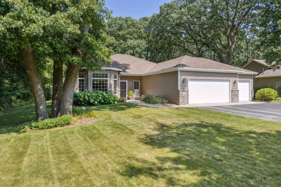 Beautiful patio home on private wooded lot. 2br plus den and sunroom with gas fireplace. Lots of updates, newer steel siding and shingles, newer kitchen appliances and granite counter tops and back splash, New washer and dryer, updated floor coverings, 9' ceilings throughout 10' in dining area, Den with built in storage and desk, Main bedroom with 3/4 bath and walk in closet, full bath, new interior paint 2022, back yard concrete patio, 3 stall insulated and heated garage with pull down storage. Hunter Douglas window treatments, in-floor heat, furnace and Central Air. On demand water heater. Incredible yard w/mature trees, beautiful landscaping and in-ground sprinkling system. Dusk to Dawn Security lighting on exterior doors and garage door.