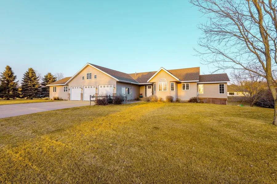 Welcome to this stunning walk out rambler, built in 1998, located on a quiet street only 1 mile from town. Beautiful, paved walking/biking trails nearby, neighborhood park, private yard with large trees surrounding it on dead-end road. Inside you will find Amish Red Oak floors, cherry cabinets, granite countertops, sunroom/dining room with cedar woodwork, vaulted ceilings, butler's pantry, main floor laundry and open concept floorplan. Both bedrooms upstairs include walk-in closets. Large primary bedroom with tiled walk-in shower and jacuzzi bath. Lower level contains large family room, 2 bedrooms with walk-in closets, flex room, 3/4-bathroom, mudroom, and plenty of storage. The exterior boasts, sprinkler system on private well, flagship stone cut patio, pond, flower gardens, storage shed, and 27 x 54 above ground pool with wrap around maintenance free decking and locking gate. Newer Furnace and AC. Schedule your showing today!