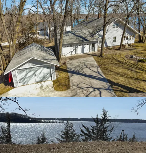 Stunning panoramic lake views—arguably 'The Best Views on Lake Koronis.' 200 ft of lake shore. You can see all three islands from this amazing turn-of-the-century home on acreage. So much charm and character throughout this amazing home—4 bedrooms, 2 baths, oversized 2-car attached garage with a second garage as well. Beautiful built-in hutch and bookcases, wonderful beamed ceilings, hardwood floors, newer stainless steel appliances, and a beautiful gas brick fireplace. Vaulted ceiling with electric fireplace on the upper level with amazing lake views. Enjoy the wildlife—eagles, geese, deer, etc.—and the beautiful mature trees. A tranquil and peaceful area to nurture your soul. This solid, beautiful, quaint lake home is ready for you!