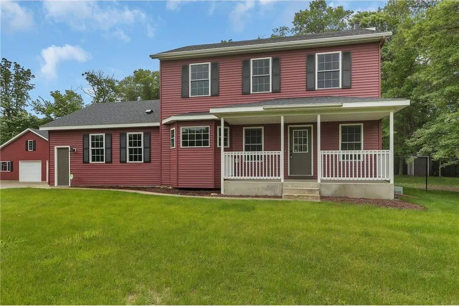 A beautiful 2 story home nestled onto a private 1.5acre wooded lot. The home features 5 bedrooms & 4 baths, a very impressive kitchen remodel with granite countertops, custom cabinetry, tiled backsplash, all new stainless steel appliances, large center island and buffet for extra storage space. Modern light fixtures and new flooring throughout the main floor, an oversized living room with a cozy wood burning fireplace. The modern mudroom and laundry room add a nice touch to the main floor. The upper level offers a large master suite with a walk-in closet and master bath, and 2 additional bedrooms and a full Bath. The basement is nicely finished with new flooring paint and home to a family room, the 4th & 5th bedroom and a full bath. In 2022 remodel they installed a whole home water filtration system, a Reverse Osmosis system, new water softner, new will pump, pressure tank and water heater. The roof was new in 2023. The outside features a fenced in back yard, a basketball court, a nice deck and patio space to enjoy the peace & quiet. The shop/storage building is 30'x40' with 200 Amp electrical service & concrete floors.
