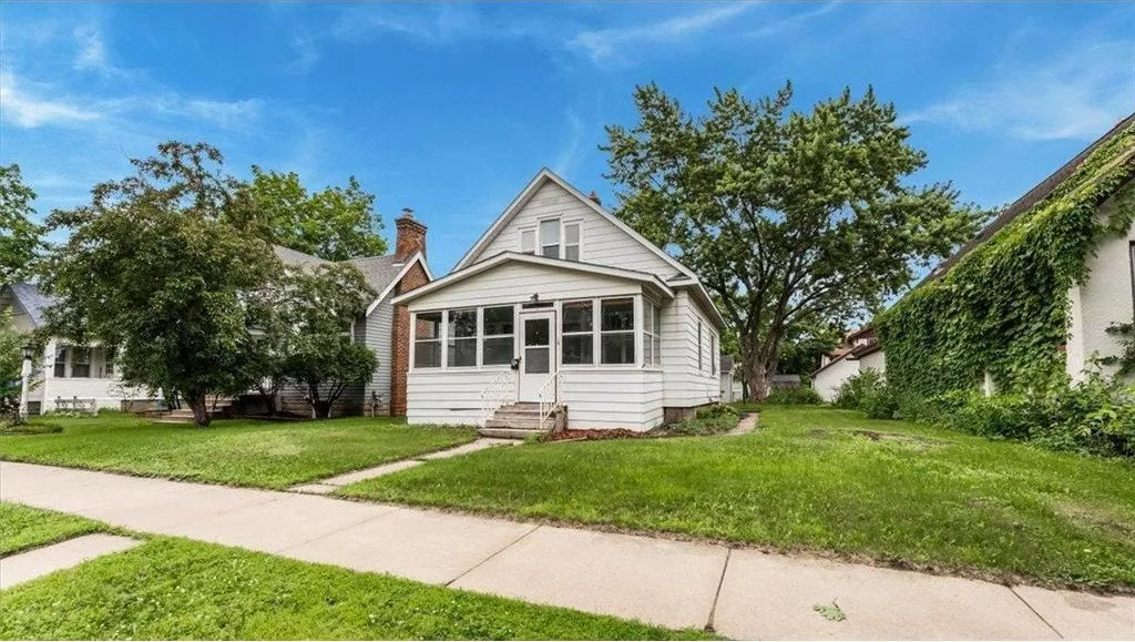 Sharply priced with great potential in a central location. Bring your ideas to make this charming 1 1/2 story home exactly what you want. Appreciate a front porch, main floor bedroom, spacious living an dining room merging for a great gathering space. Appreciate a designated kitchen area with large window overlookin the back yard. Main floor full bathroom. Upstairs find a full bedroom and a sitting room that could be an office, sleeping space , or gaming area. Lower level is unfinished and has toilet and laundry area. One stall garage in the back yard with alley way access. Enjoy mature trees and close proximity to parks, Lake George, and grocery store.