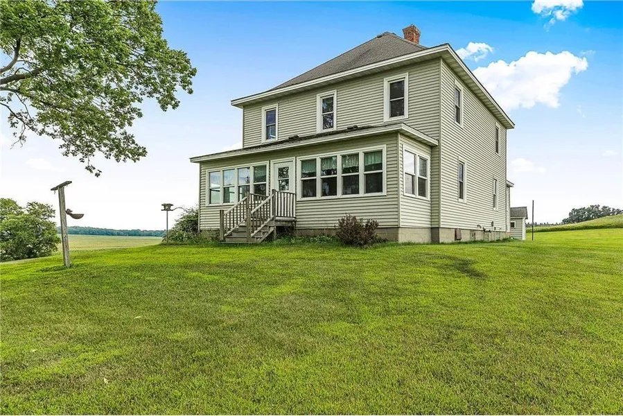 Charming 1920-built home set on 5 acres! This property offers a spacious kitchen, a welcoming front porch, and plenty of character throughout. Featuring 5 bedrooms—4 conveniently located on one level plus a main floor bedroom—along with main floor laundry for ease of living. The property includes a detached 2-car garage, multiple outbuildings, and a pole building, providing ample storage and workspace. A wonderful blend of classic charm and functionality with room to grow.