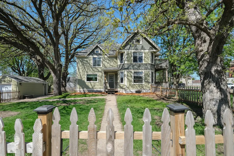 The main floor features the living room with bright, big windows, spacious eat-in kitchen, 1/2 bath & 2 bedrooms. The second floor offers a full bath, bedroom, master bedroom with laundry/walk in closet, private full bath with jetted tub and its own peaceful balcony! Fresh mulch, front & side porches, fenced in yard & 1 stall detached garage all on a corner lot! Updates in past two years: wood fence, living room & main floor bedrooms flooring, some rooms painted, toilet in 1/2 bath, washer & dryer, blinds, electricity to garage, flood light & front porch light. This home is located within the Lincoln Elementary perimeters. Call today for your showing!