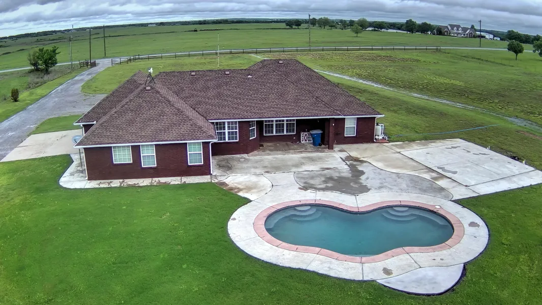 This one is for the Horse lover! 3 or 4 bedroom, 2 bath home built in 2005. Just over 10 acres (mol) with a 200x300 lighted roping arena. 5 horse stall with electric and water. The shop is a 30x40 with 2 RV plugs and a 15 ft tall 15x45 RV Awning with its own septic and water hookup. In-ground lagoon pool overlooking the acreage. Pipe fence with gated entry. Inside the home you will find gorgeous treated butcher block kitchen counter tops with 3 separate workspaces, pot filler and huge granite breakfast bar. The kitchen has an under counter top microwave and a commercial ice maker. Safe room right off the kitchen. This home has a Mother-In-Law floor plan. The primary suite features a jetted tub and the primary closet is the size of a bedroom! The garage in this home has been converted to a huge flex space/family room perfect for entertaining. The walk way around the home is stamped concrete. a 25x25 concrete slab is poured for an outdoor kitchen and has existing plumbing. This property has it all, all it is waiting for is YOU to call it HOME!