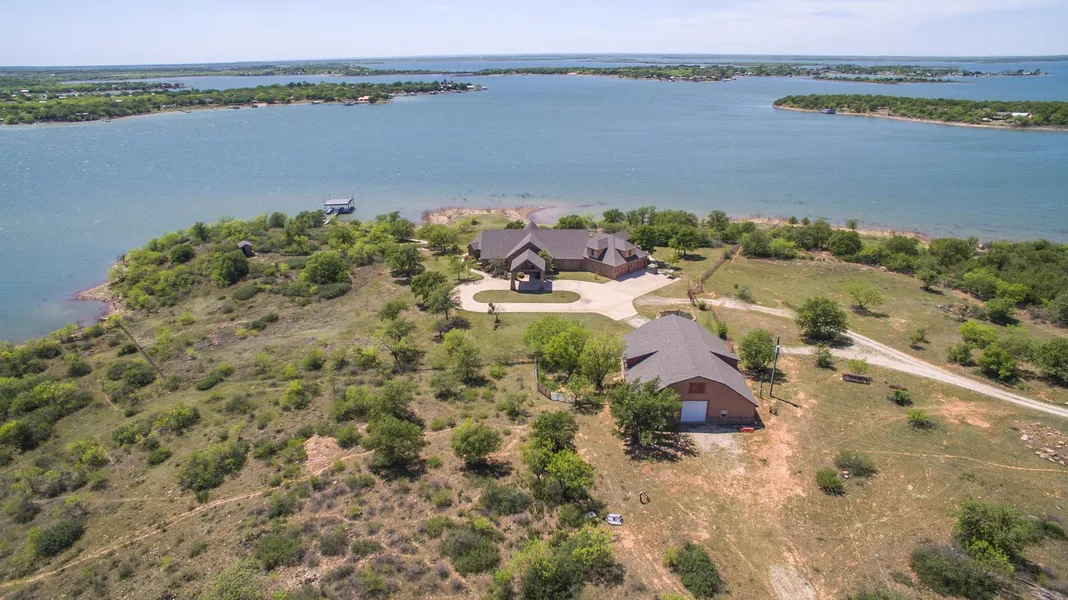 Approximately 655 ft along the west side of FM 3099 & approx. 2500 ft along the shoreline of Hubbard Creek Reservoir lies a unique family retreat on 29.98 acres.The property has an adjacent 164 approximate acres of land available.SEE MAP. This upscale 2 story home has 6092 sq. ft that includes 8 bedrooms, 5 full baths & 3 half baths. Additionally, there is a 6200 sq. ft, 2 story heated & cooled barn. A short walk from the back yard there is a 2-slip boat dock w/electric lift. The perimeter is completely fenced. This majestic home is perched above the lake and has breathtaking views from most every room in the house. Wildlife such as deer, turkey, feral hogs, seasonal dove and quail are prevalent.