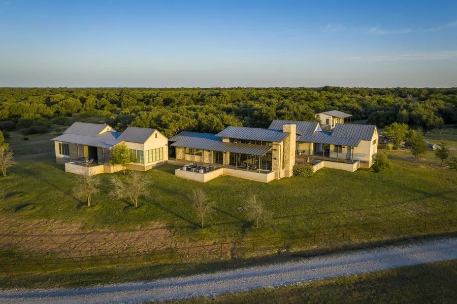 General Description: Tin-4 Ranch is a top notch, high fence game ranch in the heart of Stephens County featuring a first-class, contemporary home. This architectural masterpiece is centrally located on a hilltop with live oaks and impressive panoramic views. Key features include unique gathering areas such as Sid's place, the Lake House, and a fully operational trap & skeet range. Numerous hunting stands, wildlife food plots and fenced corn/protein/alfalfa feed stations provide exceptional hunting opportunities. There is a dove field with native sunflowers, two (2) lakes, three (3) large earthen stock tanks, three (3) wildlife food plots and plenty of topographic elevation changes. The game fence has been well maintained and there is a road allowing access around the entire perimeter of the property. A good internal road system provides access throughout. Cross fences are in great condition with 4 primary pastures, two fenced wildlife food plots, and fencing around the main home and guest home. The terrain has over 100 feet of elevation change with a branch of Little Cedar Creek traversing the central valley running through the property. Tree cover consists of live oak, post oak, elm, cedar, mesquite and a variety of other hardwood trees typical of SE Stephens County. Hunting is excellent with huge whitetails and a small herd of axis deer. Tin-4 Ranch is game managed and in TPWD's MLD Program. The ranch has produced several trophy class whitetail bucks, not to mention the strong population of turkey, dove, and ducks. The lakes are stocked and excellent for fishing with a fish feeder on the larger of the two lakes and plenty of ducks in the fall and winter. This one of a kind property is being sold turn-key and ready to enjoy from day one. Visit for complete details.
