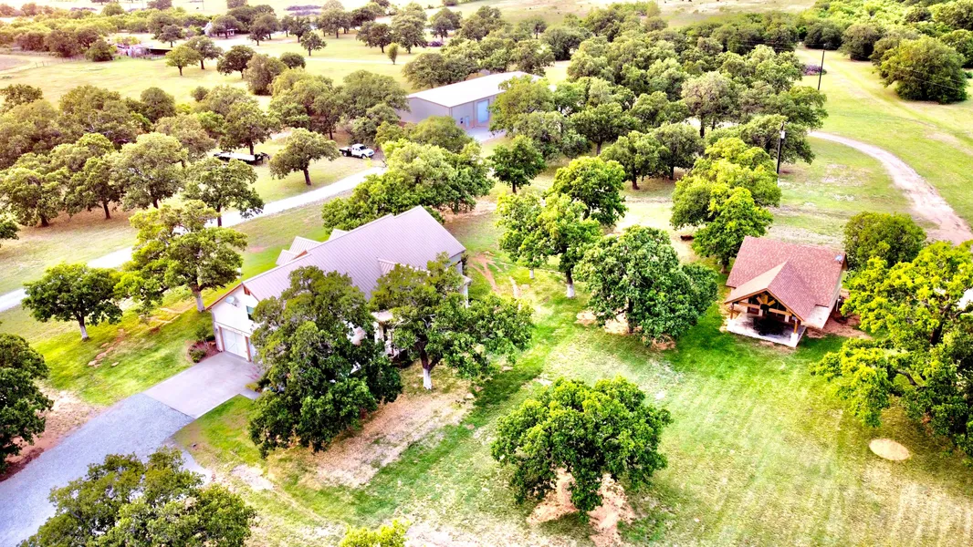 A PRIVATE OASIS on 396 ac with a gorgeous custom home and guest home. This property has frontage on FM 1852 and the county road. It is fenced and cross fenced...the north side near the county road has newer 9-strand wire. There are 5 stock tanks. Two water wells feed both homes. Granite counter tops. Current owners use one bedroom for an office and another for a craftroom and there is a bonus room upstairs also. The luxurious master suite provides elegance and comfort like no other with custom features and an enormous custom closet! The front doors are from India and are magnificent. The exterior is Austin stone with multiple beautiful porches for relaxing. There are 3 ac units, 2 water heaters, & beautiful tile and wood flooring. Any chef would be envious of the custom kitchen with all its amenities. The guest house is a miniature version of the big house. The shop is 50 x 125 with a 16' side walls and several roll up doors. Aerobic septic. Water filtration System. See private remarks.