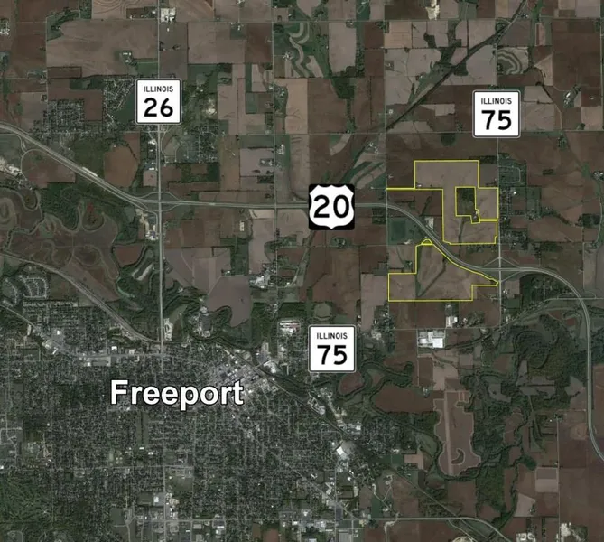 Major Highways: Illinois Route 75 and U.S. Route 20 border the farm, and Illinois Route 26 is 2 miles west.