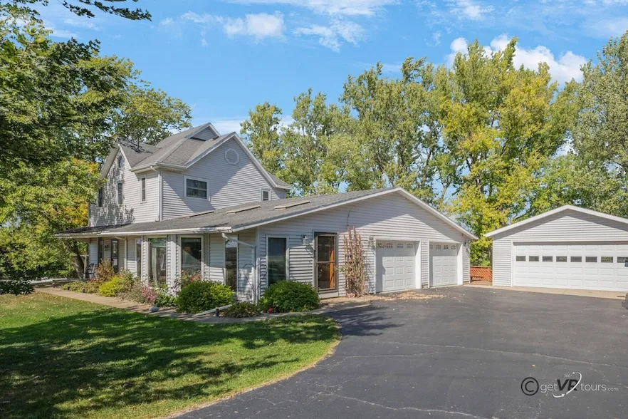 Welcome home to this 3 bedroom, 2 bath 2-story on 1.46 acres in Orangeville school district! Updated kitchen that includes eat-in table space, island with barstool seating, granite counter tops, soft close cabinets and a pantry. Large family room with a gas fireplace with thermostat and skylights. The main floor also has a living room off of the kitchen that could be used as a formal dining room and an updated full bath with granite countertops and a walk-in shower. The upper level has 3 bedrooms and an updated full bath with granite countertops and a walk-in shower with dual shower heads. There also is pull downstairs that leads to an attic storage for all of your storage needs. The lower level has cabinets and countertop space and a walkout that leads to the backyard and deck. The 2-stall attached garage has 60amp service, an air compressor, heater and pull downstairs for storage while...