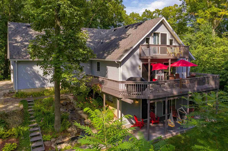 Your Own Private Oasis with Deeded Lake Access to Lake Minifenokee! This spacious home features 3 bedrooms with an extra room for a guest room or a den-no closet- a finished walk out basement, 3.5 bathrooms, loft & rec room space, a sprawling lot of 1.73 acres and access to Lake Minifenokee! The kitchen features stainless steel appliances with easy access to the outdoor deck for entertaining. In the walk out basement there is a airy family room, ample storage, half bath, a spectacular laundry room, and 2 sliding patio doors leading out to the lower deck and private yard. The main floor master features its' own master bath, walk in closet, and a sliding patio door to a spacious deck overlooking your private back yard. This home features over-sized windows which allow for an abundance of natural light flowing through the home ensuring majestic views of your own haven! The yard is a gardener's dream come true with a plethora of perennial blooms throughout the year and gorgeous custom wood carvings throughout the yard. You do not want to miss out on this well kept home with breathtaking views of your very own retreat! For large gatherings accessing the property off of CR 100 E is incredibly easy.