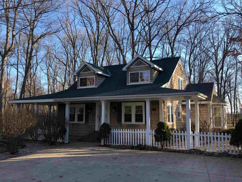 Immediate possession on this updated Cape Cod style design home with 4 bedrooms and 2 bathrooms located just minutes from town on a private 1ac wooded lot. Detached 30x60, 1800 sq. ft. garage, 2x6 construction with workshop and a full 2nd story with another 1800 sq. ft. that would make a great man-cave, brand new Bryant 95% efficient gas furnace & central air with heat ducts to both the main floor and the upper level, also has radiant heat on the main floor. Home has hard wood floors throughout, built-in entertainment center in the living room, built-in desk in the office/bedroom on the main floor, built-in entertainment center and built-in dressers in the 2nd floor master bedroom and closet walk in tiled shower with 7 jets in the master bathroom and 2 separate sinks also a 2nd bedroom on the upper level. Large remodeled kitchen with all appliances, breakfast bar, wine rack, 2 pantries, and built-in cabinets in the dining room. Basement has a rec-room, 4th bedroom, large storage closet, mechanical/laundry room. Outside of the home has vinyl cedar shake siding, covered porch and a screened in porch, and fenced-in yard, concrete driveway.