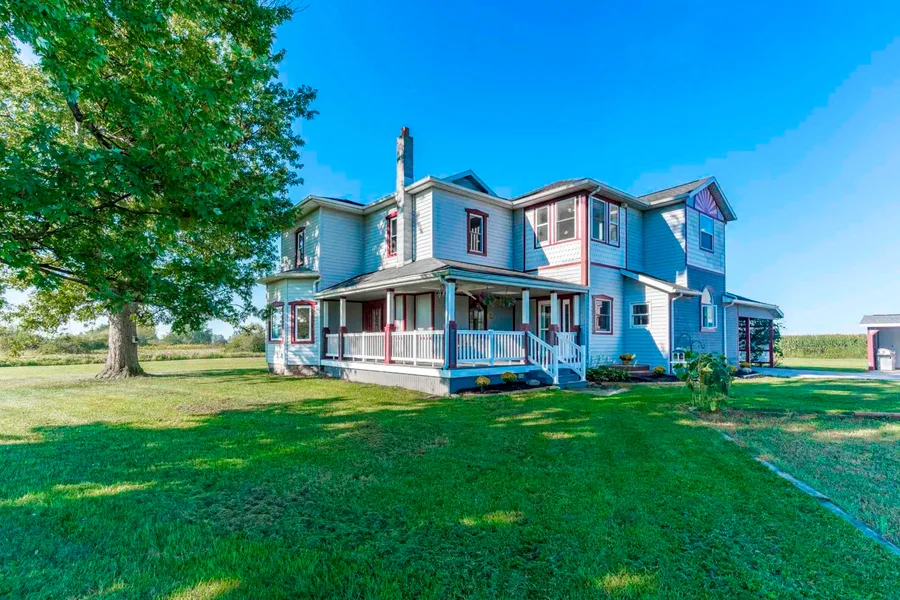Start your mornings off on this large, beautiful porch looking over 5 acres! This 4 bedroom 2-1/2 bath home has been remodeled top to bottom, no details have been spared. To keep utility costs down, an outdoor wood burning boiler was installed to heat the home, the 45x70 garage, as well as above ground pool. The 4 car garage has an attached workshop that would be any woodworks dream. The garage also has a car lift in one bay and enough room for a 40'+ motor home in another. From towel warmers to custom woodwork, there are way to many details to list for this home!