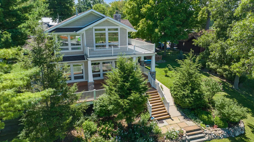 The sale includes two properties: 840 Lane 440 Lake James and 835 Lane 440 lake James. Charming two-story stone and shake sided custom home overlooking Lake James and within walking distance to the best entertainment and restaurants in the area. Enjoy expansive water views, multiple wrap around decks, and a 130 ft dock spanning the shoreline of the property. Sale includes 1800 square foot Back House with a fully equipped studio apartment accompanied by a full bath and kitchen and a massive garage with plenty of space for storage and guest parking. Together, these properties have over 4,100 livable square feet, sleep 13 and have plenty of room for more guests. The Main House hosts over 3,400 of livable square feet. The open floor plan shines with expansive floor to ceiling Pella windows, gleaming hickory hardwood flooring, stone wood burning fireplace and custom blinds. The kitchen features custom hickory cabinetry and quartz countertops. Relax in the master bedroom with ensuite, decked out with Kohler rain shower heads, walk in custom closet, and private access to upper wrap around deck. Welcome home to your retreat at Lake James!