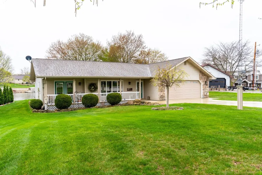 Welcome to your new waterfront home on Snow Lake! This charming ranch-style property sits on a nice sized lot with 63 feet of water frontage, providing you with beautiful water views and plenty of outdoor space to relax and entertain. As you step inside, you will be greeted by a spacious and open floor plan that includes a cozy wood burning stove in the dining room, perfect for chilly evenings. The living room is oversized and boasts panoramic views of the water, making it an ideal spot for family gatherings and entertaining guests. The kitchen has been updated with solid surface countertops, newer appliances, beadboard cabinets, and a white subway tile backsplash. This lovely home features two bedrooms and two full bathrooms, with the front living room offering an easy conversion into an additional bedroom. The garage includes an epoxied floor and mechanical room with built-in storage, providing ample space for all of your outdoor gear. The home also features engineered hardwood flooring in the foyer, hallway, and dining room. Step outside onto the brick paver patio and enjoy grilling on the natural gas built-in grill island, perfect for hosting summer barbecues. The lawn is equipped with a gravity-based sprinkler system to keep your yard looking lush and green all season long. North Snow Bay is a quiet and peaceful area, providing the perfect backdrop for your lakefront retreat. This property also provides access to the entire Lake James Chain, allowing you to explore all the wonders that this beautiful area has to offer. The beach at this home is good for swimming and sunbathing, ensuring that you can make the most of your lakefront lifestyle. This home also features attic storage, making it easy to keep all of your belongings organized and out of sight. All appliances, pier and two boatlifts are included in the sale. Don't miss this rare opportunity to own a home in the sought after and prestigious North Snow Bay of Snow Lake!
