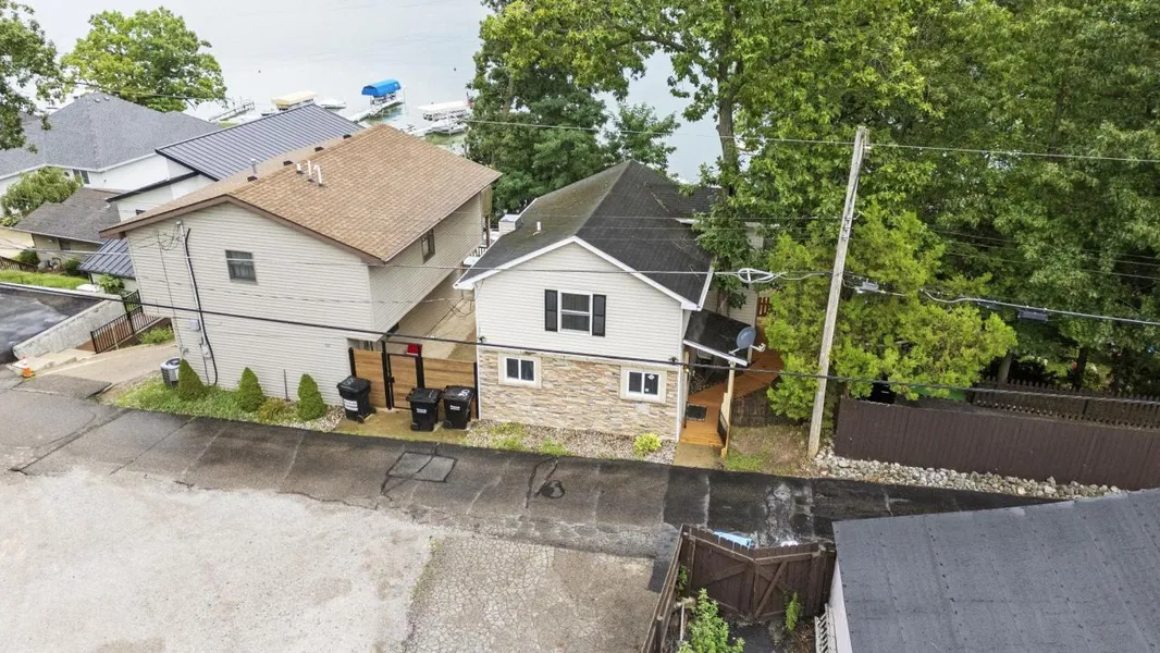 Amazing Views of Lake James from deck on both levels with your own private dock & deeded lake access, this home is fully furnished and ready for your enjoyment or would make an excellent investment property, currently used as a rental on VRBO, no HOA restrictions. The main level is open concept , a great space to hang out & enjoy the lake life with friends & family, featuring a cozy LR with sliding door leading to a good size deck with lake views, a full kitchen/dining area and a half bath & a new mini-split A/C unit. Upstairs there are 2 bedrooms, each with its own full bath, separate controlled A/C units and deck access for both rooms with more great views. Access your private dock down the stairs from the deck to a 12' wide easement and 3' x 40' vinyl pier included & enjoy the Lake James chain with 1200 acres of water to explore & enjoy, including 5 lakes- James, Snow, Jimmerson, Big & Little Otter. Walk to restaurants & bars-Club P. Traditions, Acapulco, Waterfront Bistro- The 6 & Tom's Donuts - Call your favorite agent and schedule your showing!!
