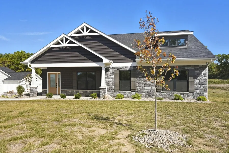 Under construction! This brand-new Kiracofe Homes stunner is being built between Lake James and Jimmerson Lake in an ever popular and convenient location. This 1867 sq ft home is the perfect size home for families. The covered porch and extended patio make for comfortable outdoors time and the primary bedroom and bath are situated on the quiet side of the home. The great room features a beautiful fireplace, a well-appointed kitchen with stainless appliances included, a flush bar and quartz countertops for quick breakfasts and a dining area for family meals. Bathrooms all feature double sinks and the master has a tiled walk-in shower. The 3-car garage is on the rear of the house for a super clean look. Gorgeous deep color tones set this beauty apart from the others. A seller-provided 10 year warranty comes at no cost to buyer. Water softener already installed!