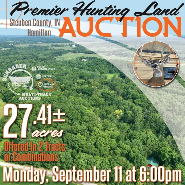 Tract 1: 15.1 ac of Pristine Hunting in Northern Indiana! Boasting a beautiful location for a hunting cabin on a ridge overlooking Fish Creek. It offers some of the best deer and turkey hunting in the area. The creek is home to beaver, mink, and otter, adding to the rich wildlife experience. With lush hardwood trees and an insulated 8x8 permanent hunting blind, this land is an outdoor enthusiast's paradise.