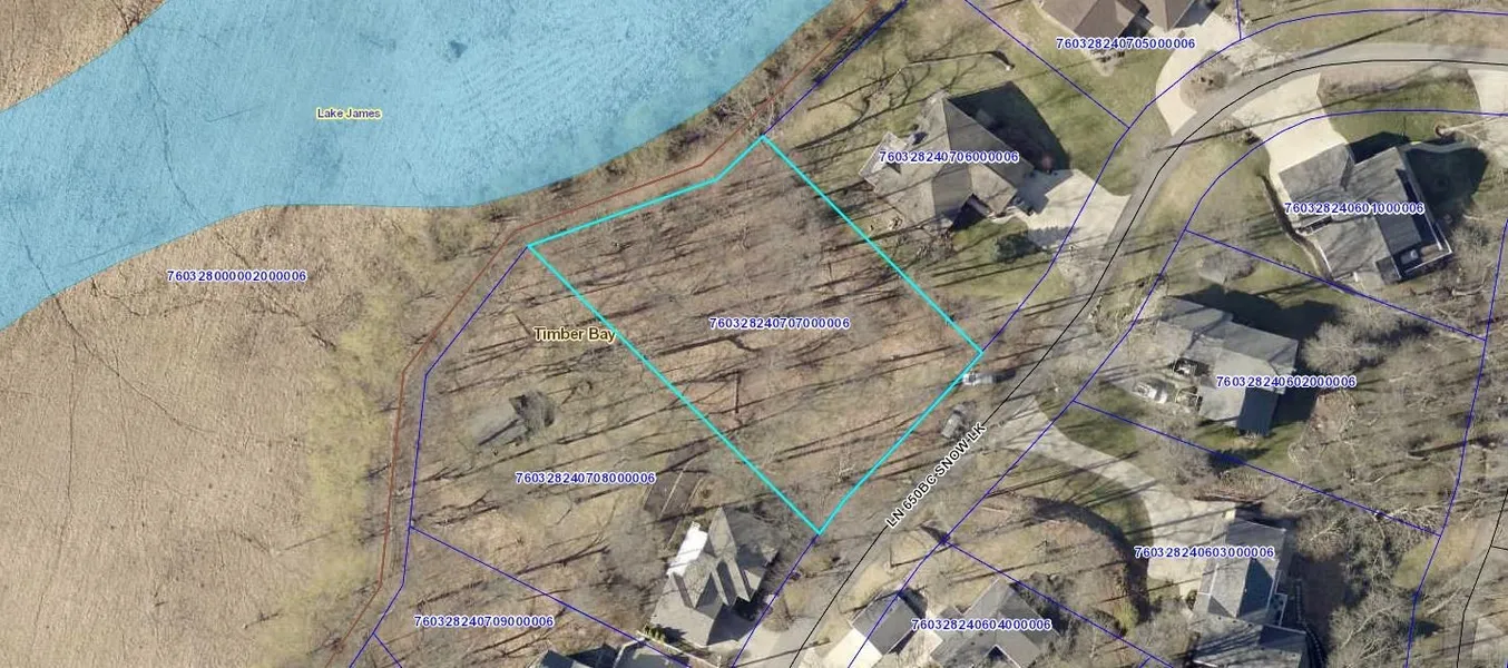 Beautiful large wooded lot perfect for a walkout basement in Timber Bay subdivision. Timber Bay is quiet neighborhood with large lots and stately homes located between Snow Lake & Lake James. Lot includes your own dock space on Lake James! The Lake James chain is the premier chain in the area comprised of 5 lakes in total, 3 ski lakes and 2 fishing lakes with over 2,100 acres of water plus restaurants and nightlife all accessible by boat. Lot is conveniently located near I69 and the 80/90 toll road. Shop at the outlet malls or explore Pokagon state park all just a few short minutes away. Don't miss your opportunity to buy one of the last lots in this great neighborhood!