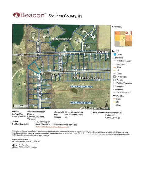 1/2 acre lot in Follett Estates in Fremont,IN. Homestead Acres,Inc. has many building plans/options to choose from!