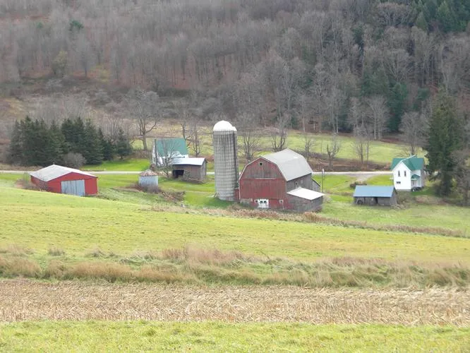 A former dairy farm, known as Warrinerdale Farm, offered for the first time in over 60 years. The property with many updates includes 2 houses, original post and beam dairy barn with 29 stanchions, milk house with 650 gallon stainless steel bulk tank, pipeline collection system, concrete stave silo, steel grain bin, pole barn machinery shed, chicken house and original wagon house, all on 325 acres. The land consists of 100+- acres tillable, 45+- acres of pasture, 5+- acres of wetland with pond and 175+- acres of woodland with over $60,000 in marketable timber. Corn and hay was the most recent crops harvested from the tillable acreage. The land includes a wind lease with plans to construct 2 windmills within the the next 2-3 years. There is a current gas well on the property providing free gas to both houses and the milk room. The mineral rights convey along with the current gas lease. Many opportunities - reestablish the dairy operation, raise other livestock or buy as an investment property and lease the houses, rent the farmland and manage the timberland. Offered at $698,900. Call NY Land Quest at 877-257-0617 for more information and to schedule a private showing.