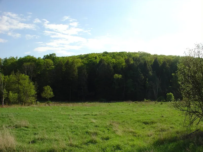New York land with stocked ponds, Goodhue Creek, food plots and woods for Sale: The property has approximately 2,300 feet of road frontage on Goodhue Lake Road (County Route 3) and is on the east side of the big red barn being retained by the seller. This property has a history of management for wildlife, particularly deer and turkey. The seller has spent many hours grooming this parcel to help create the kind of habitat that provides food, shelter and water that holds the game on the property. The parcel is a matrix of maintained open (agricultural) ground along with brush, transition and woods. The open ground has been maintained in the CRP program and has been seeded and/or mowed accordingly. Goodhue Creek flows N-S through the entire property. There are four ponds located off the south tip of the large field near the center of the property that were all developed under the wildlife habitat improvement program (WHIP). All ponds are stocked with fish and all pond areas are planted in clover to further promote the habitat conditions and supplement the feed available. Numerous trails exist that provide access to all of the best hunting on the property. Stands are located in all the best areas and are accessible by ATV/UTV. There are multiple quality sites to build a future home or camp. Electric is available at the road. There are designated wetlands following along each side of Goodhue Creek as it traverses the property. There are no oil or gas leases affecting the property and the seller owns and will transfer to the buyer 85% of their interest and retain a minor 15% interest in the oil, gas and mineral rights.