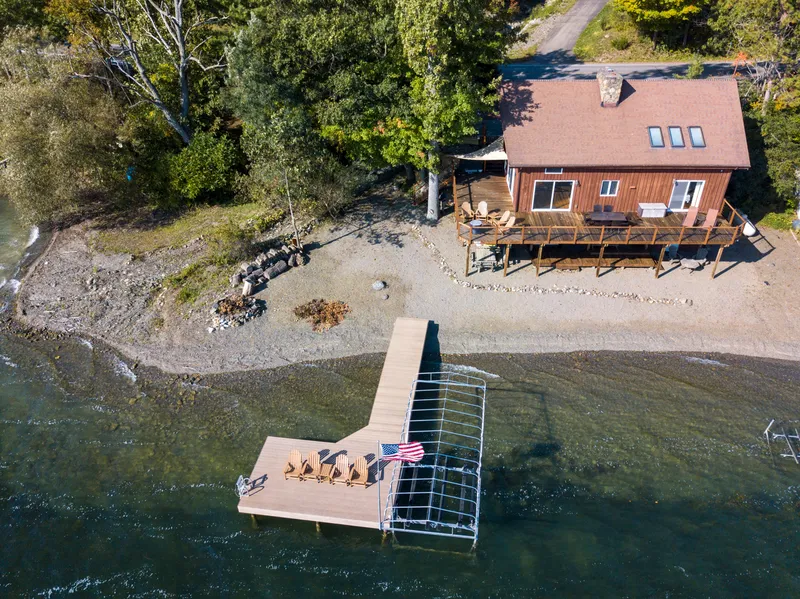 Keuka Lake-1980's rustic contemporary.....so comfortable with a large wood-burning stone fireplace to the Great Room's peak. Pine floors on main and loft area, 2 full baths, 3 bedrooms-all on independent levels, vaulted ceiling, new permanent dock, new kitchen appliances, lots of parking, 1.6 acres, 120' of all natural frontage, and a wonderful wrap-a-round deck. The views are breathtaking, and you can enjoy this home year-round. During temporary detour from Branchport please follow detour to Armstrong Rd, turn left on Armstrong and follow towards lake, turn left (north) and follow to #15822.