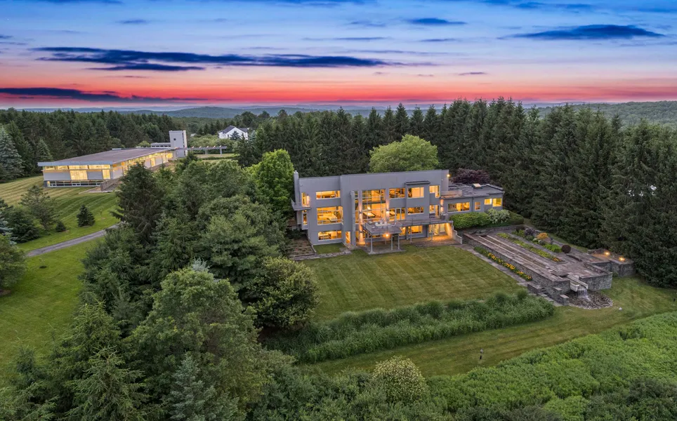 An architectural masterpiece awaits at this extraordinary Glass House and Tennis House compound designed by renowned architect George Hascup, founder of Hascup Architecture. This private sanctuary spans over four acres in prestigious Corning, featuring nearly 16,000 square feet of combined living spaces across two distinctive structures. The main Glass House delivers seamless indoor-outdoor living with panoramic views throughout three levels, while the impressive Tennis House offers a full-size indoor court, fitness gallery, and contemporary guest quarters. Sophisticated interior and exterior lighting systems create dramatic evening presentations. Located minutes from world-class cultural attractions and the renowned Finger Lakes wine region, this unique compound represents the pinnacle of luxury living with unmatched recreational amenities and architectural distinction in one of New York's most coveted destinations.