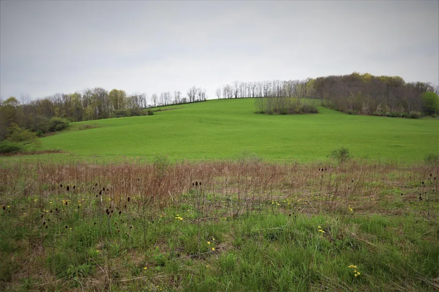 Rolling hills of hay, timber and low brush make up this property composition with maple being the predominant hardwood. There is 2,400 +\- feet of road frontage that wraps the east and south property lines providing access to the property. Several deer were bumped from their beds in the hollow on the southwest property line. The owners have enjoyed years of trophy hunting on the farm. Being selective for bucks, however, took ample harvest of does managing the population. Recently the landowner harvested a 20” wide 10 pt, and a 21.5” wide 9 point from the sister property. For income, this property rents for hay production and produced four hundred 1,000-pound round bales in 2020 on the two properties. Building a house, cabin or camper for recreation and hunting is easy, and sites are easily selected if a move is in your future. The property has a couple of locations that would lend a view and strategic landing for any structure you chose. This property also has a sister property of 105 additional acres if you would choose to expand your land and own more property of hay and hunting. Check this one out!