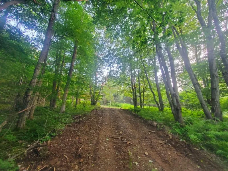 The completely wooded parcel has a seasonal creek and remnants of a small 4-acre field that is now overgrown with small pine trees and golden rod. Some newer existing trails lead through the property for riding and hiking, with additional abandoned logging roads that could be improved. The timberland has some hemlock but consists predominantly of hardwoods with strong populations of maple and cherry.