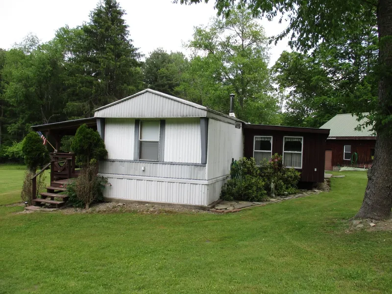 New York wooded land with a turn-key hunting cabin with 2 car garage, utilities, hunting stands, stocked bass pond and stream for sale. This turn-key camp and all utilities is a rare find. Situated just minutes from Corning and in the heart of some of the finest whitetail hunting in NY state, it’s a sportsman’s paradise.The camp consists of a remodeled single wide trailer and two additions, including a recreation room with pool table and a hot tub room. Two covered porches add to the relaxing charm of this secluded hide away. With two bedrooms, two full baths, kitchen, laundry area and living room, you’ll feel right at home. There’s even a two car garage/shop with a loft for plenty of storage and a place to work. Electric is provided through a 200 amp service and water is supplied by a drilled 150’ well. There’s even a backup gravity feed spring to the camp so if the power goes out, you...