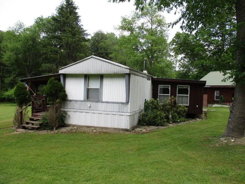 New York wooded land with a turn-key hunting cabin with 2 car garage, utilities, hunting stands, stocked bass pond and stream for sale. This turn-key camp and all utilities is a rare find. Situated just minutes from Corning and in the heart of some of the finest whitetail hunting in NY state, it's a sportsman's paradise.The camp consists of a remodeled single wide trailer and two additions, including a recreation room with pool table and a hot tub room. Two covered porches add to the relaxing charm of this secluded hide away. With two bedrooms, two full baths, kitchen, laundry area and living room, you'll feel right at home. There's even a two car garage/shop with a loft for plenty of storage and a place to work. Electric is provided through a 200 amp service and water is supplied by a drilled 150' well. There's even a backup gravity feed spring to the camp so if the power goes out, you...
