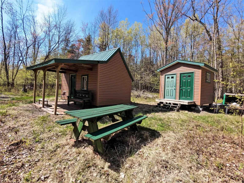 The cabin was built on a concrete pad, fully insulated, and wired for deep cell batteries. It has a loft for sleeping and with some interior finishing would make a cozy weekend get-away. Next to the cabin is a 10 x 10 bath house. The carefully finished bath house has a shower and toilet separated by a sliding wood door. Running water is supplied by a small pump and barrel system utilizing water brought in by the owner.