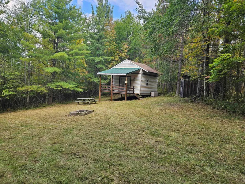 Built in 2012, the 16 x 16 cabin sits on posts with a shingle roof and vinyl siding. Step inside off the covered front porch to this one-room cabin with a loft for sleeping space. A functionable cabin with a propane stove and is wired for electricity. Power is supplied by two existing solar panels and a generator is used for back up. Electric and high-speed internet are available at the road.