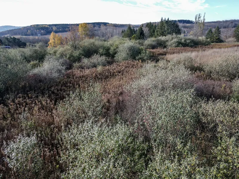 With scenic Southerly views, this could be your next recreational retreat for a potential cabin site, home site, or RV setup. A laneway has been cleared along with an area for a potential build site or RV site to capture some beautiful views. Deer sign is plentiful with thick cover and obvious trails crossing the fallow field. The nearest electric utility pole is approximately 480 feet to the Southwest from the corner of the lot A recent survey will convey with this parcel. The adjacent larger lot and another lot may still be available as well, as referenced in the one aerial photo as Lot 1 and Lot 2. All rights convey.